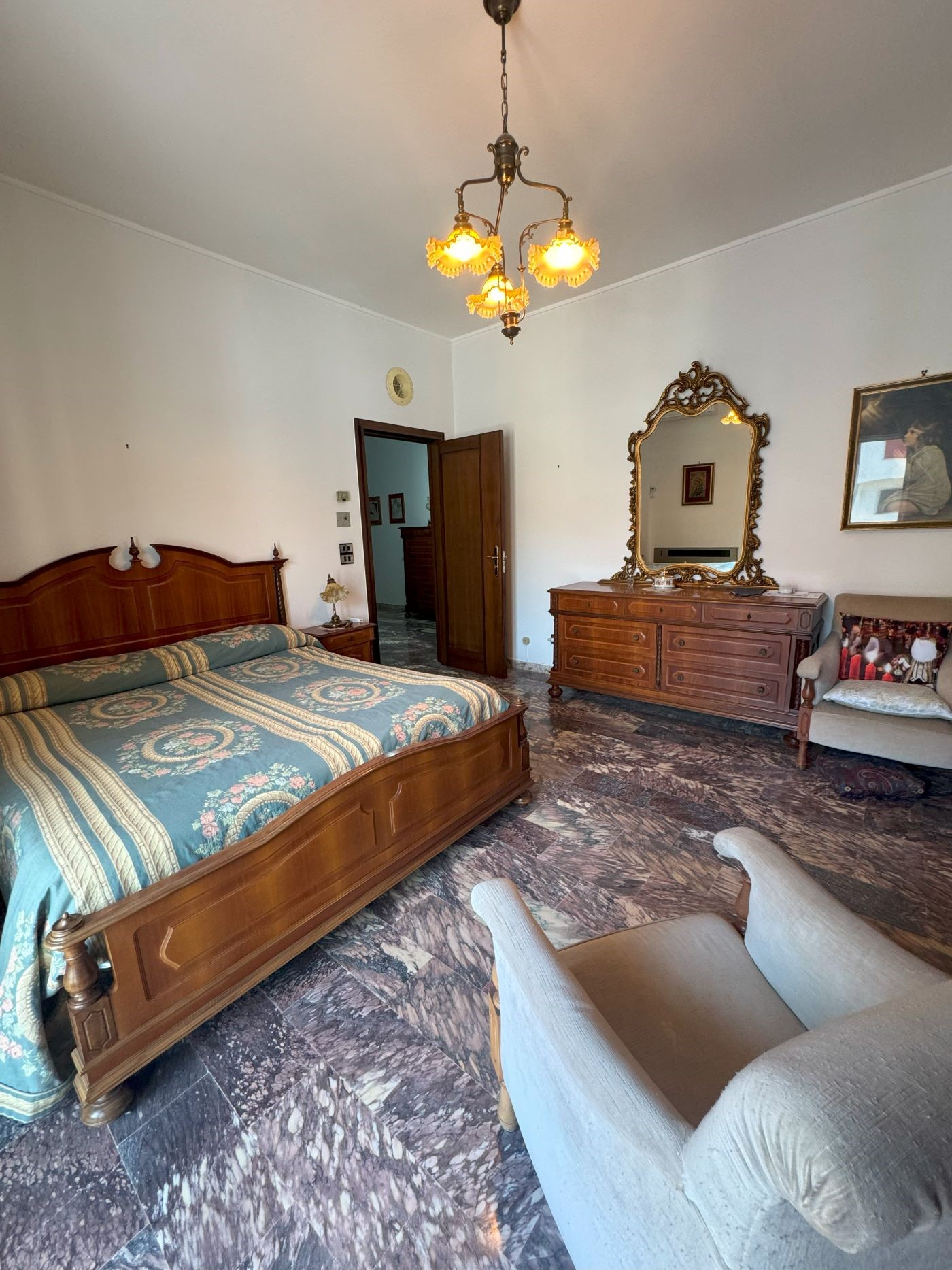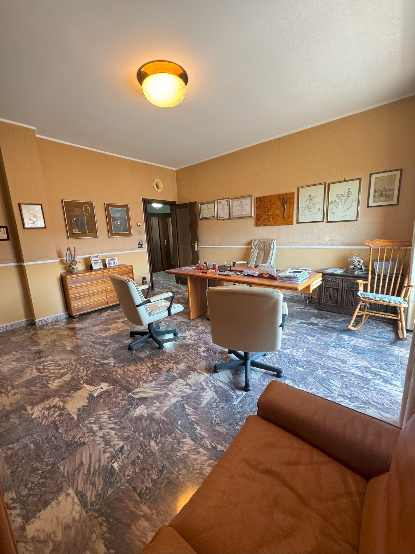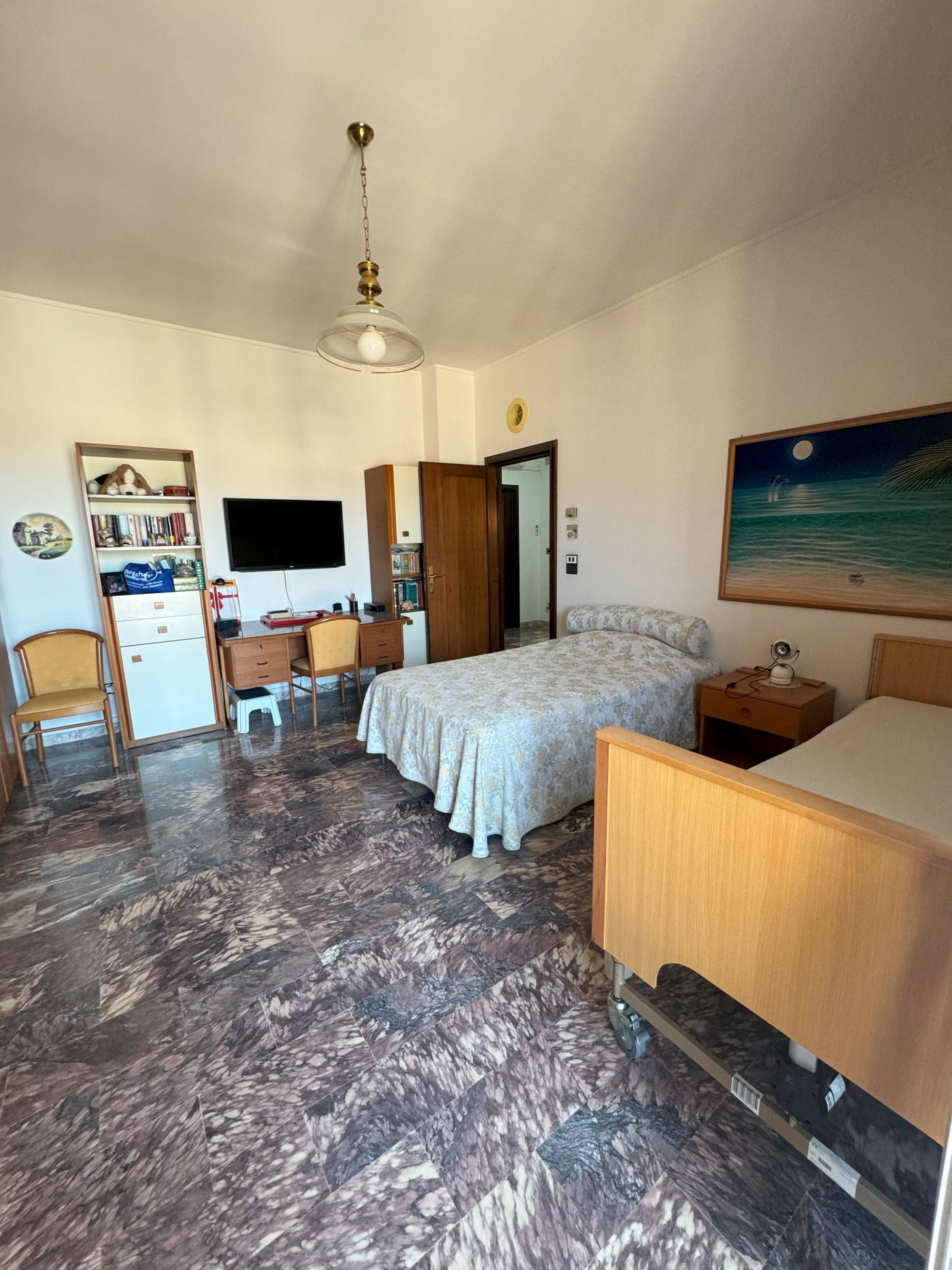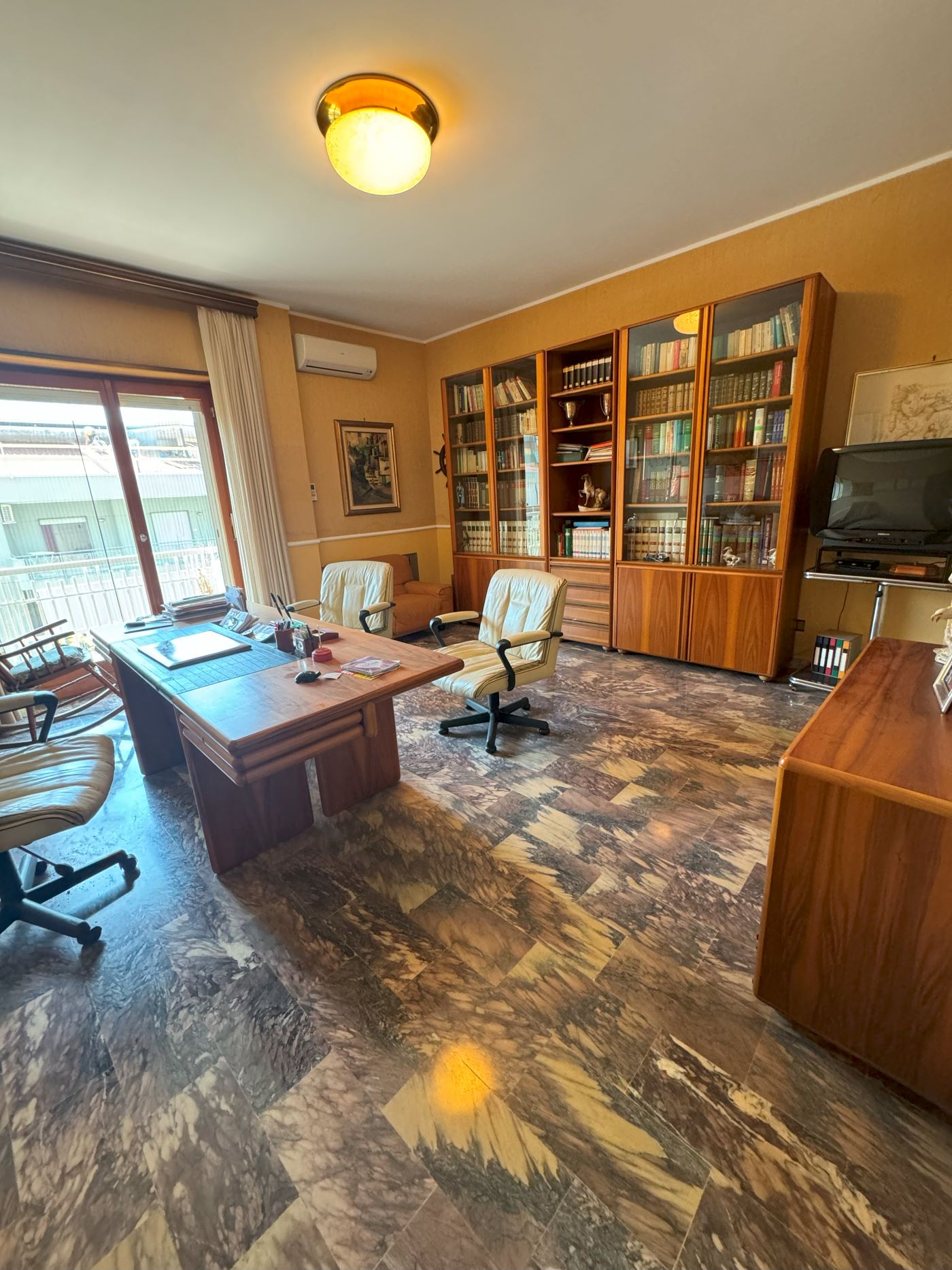 L’immobile si compone di un ampio ingresso che conduce allo studio, al triplo salone, cucina, bagno e ripostiglio, il corridoio conduce alla zona notte, perfettamente separata dalla zona giorno, che dispone di 3 camere da letto e doppio servizio.